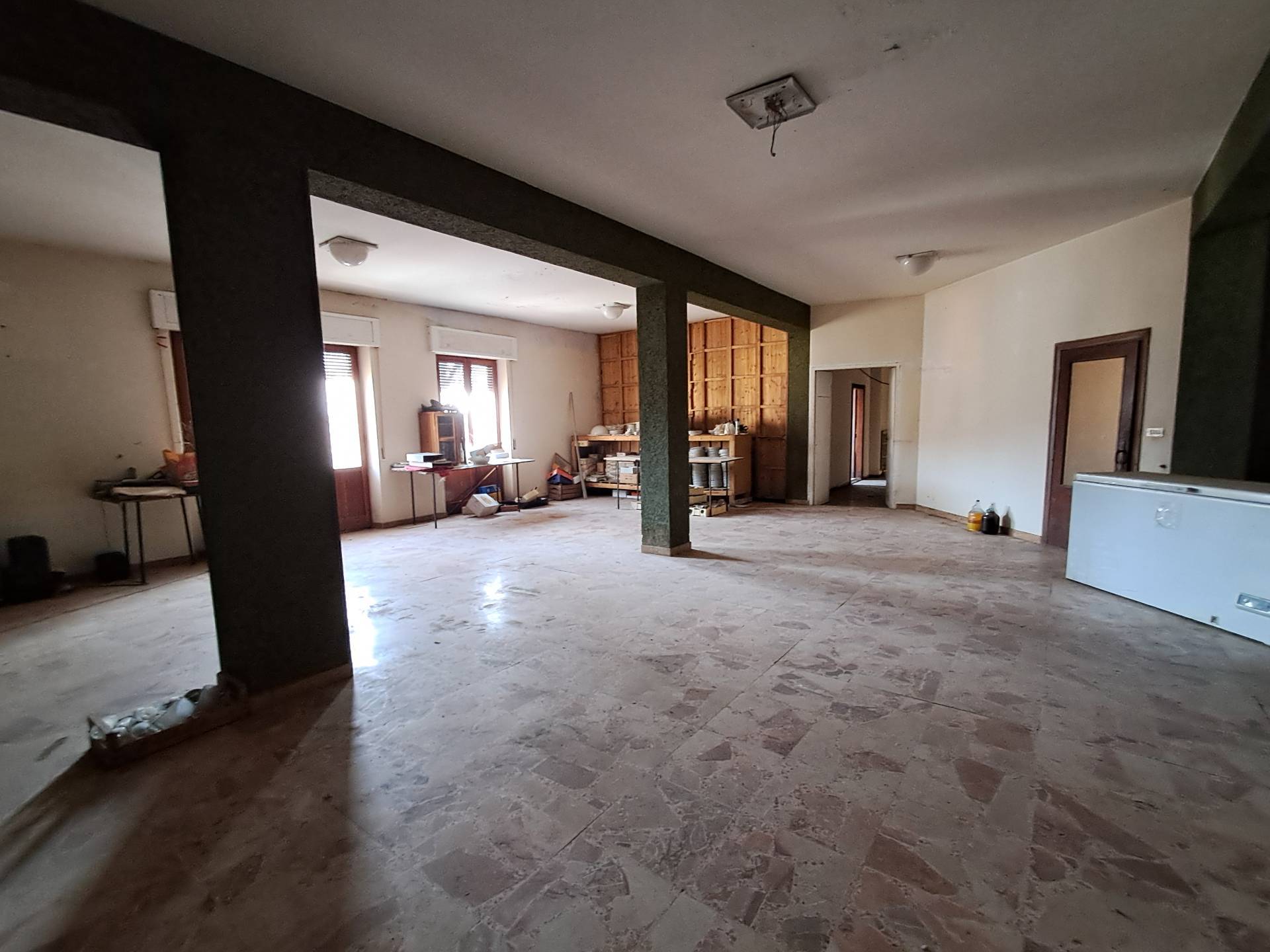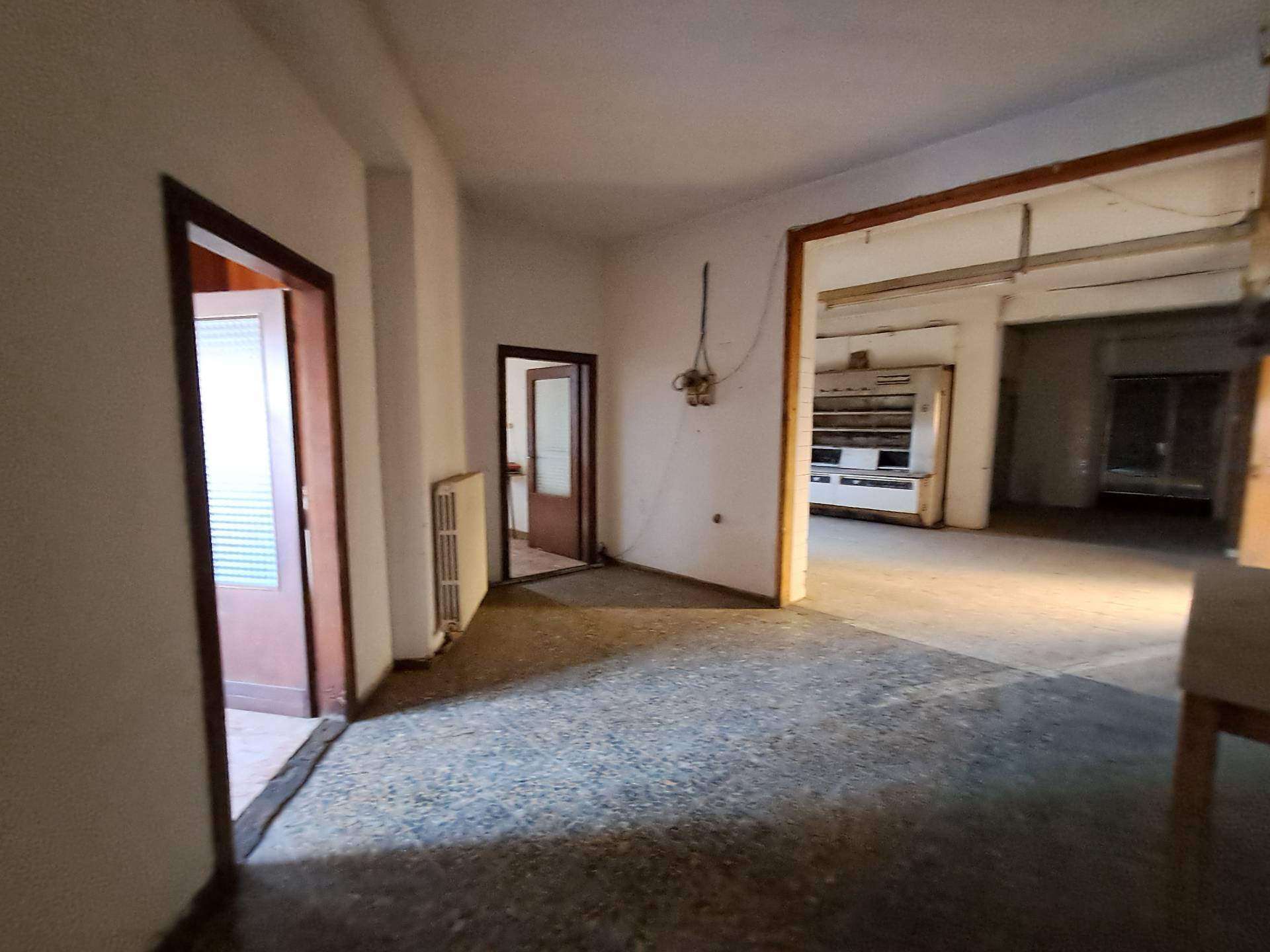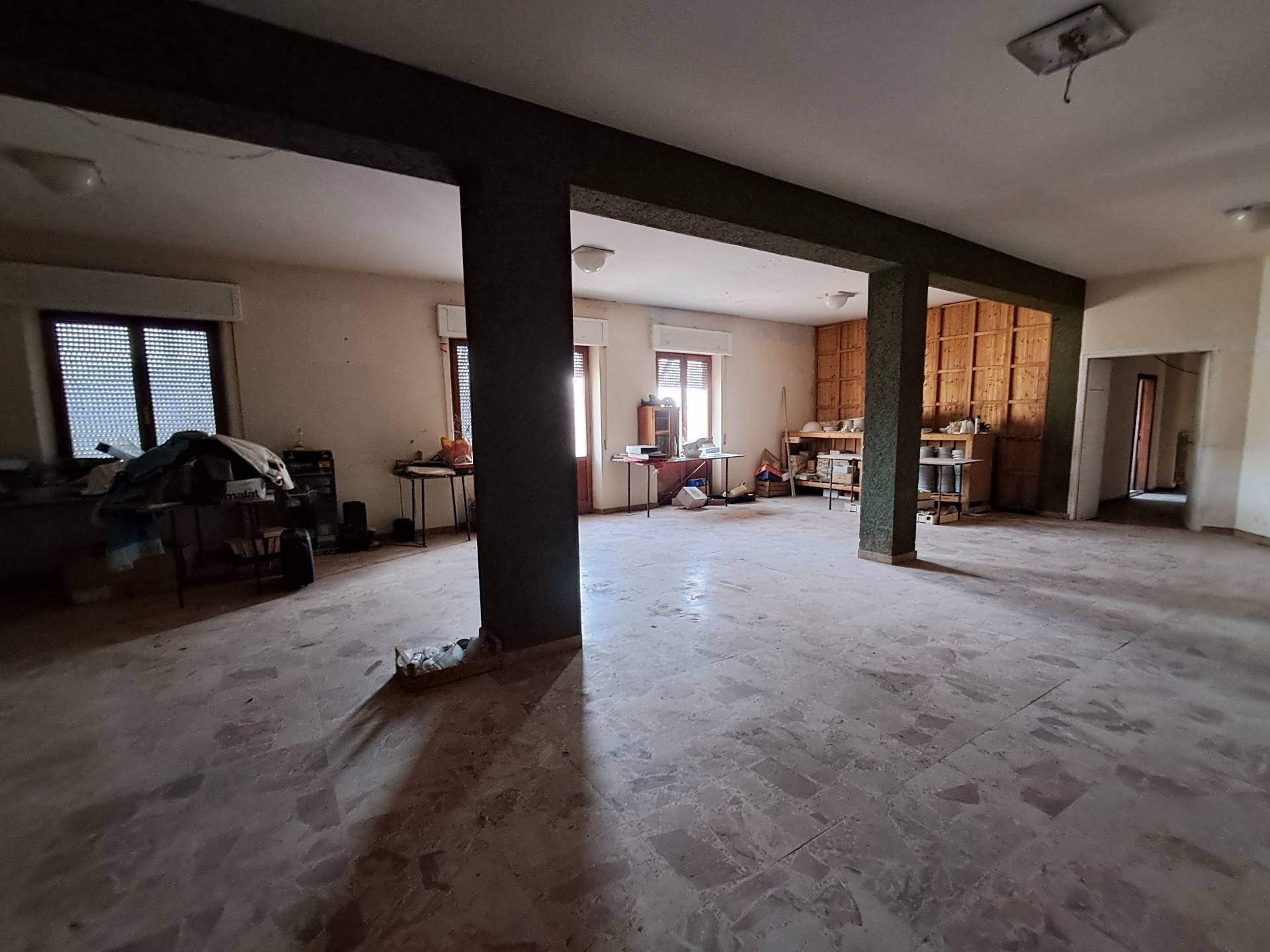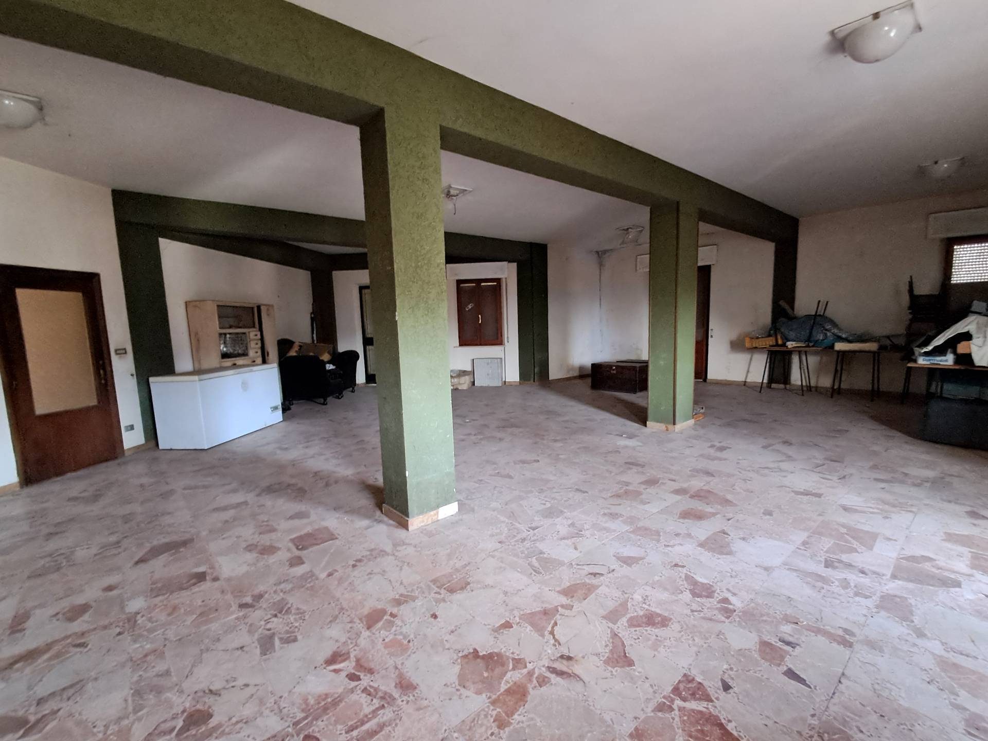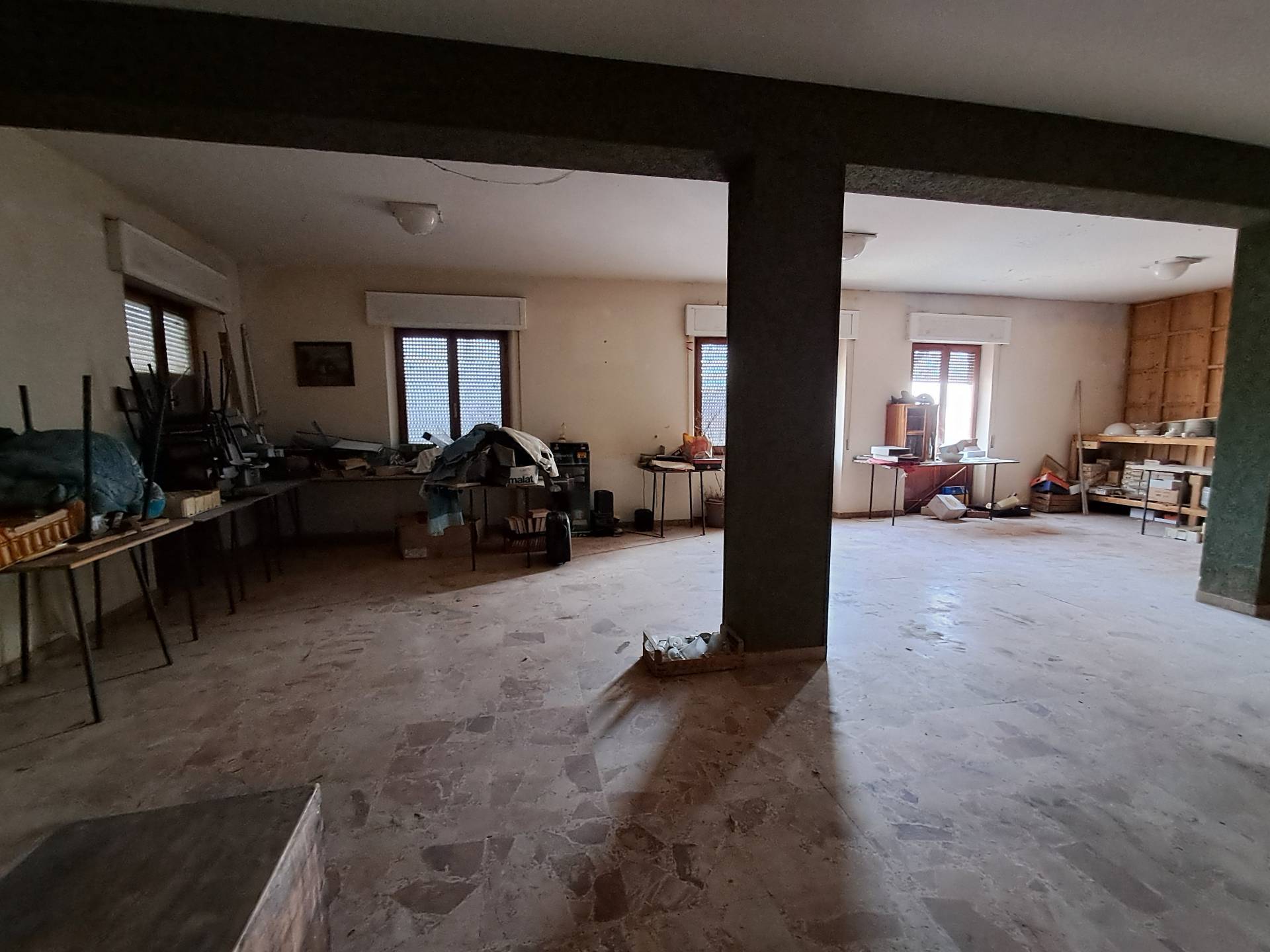 Ascoli Piceno, frazione Venagrande, magazzino di mq 255 con possibilità di cambio di destinazione in Appartamento, facente parte di un edificio costituito da tre piani fuori terra, di cui occupa il primo piano. L'unità immobiliare ha due ingressi, si presenta in discrete condizioni di uso e manutenzione, pavimenti in marmettoni, infissi in legno con vetro singolo, il riscaldamento è autonomo con radiatori. L'immobile presenta un'esposizione su quattro lati, quindi molto luminoso e arieggiato. Con il cambio di destinazione, si possono ricavare due ampie unità abitative. Opportunità di acquistare un ampio giardino e un ampio garage.