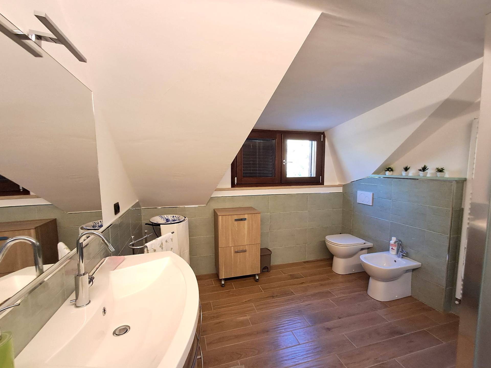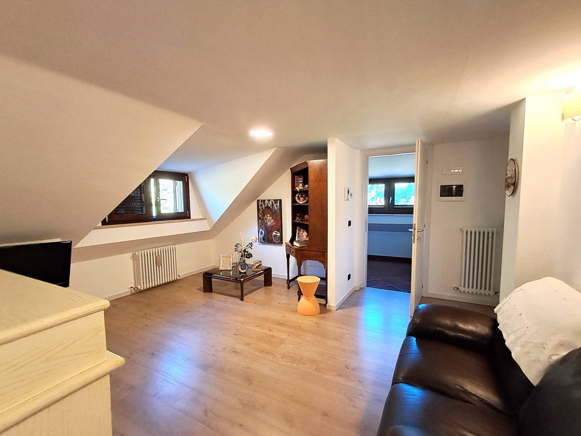 Ha una complessiva superficie coperta di circa 400 mq più balconi per 110 mq e un grande e curatissimo giardino con piante ornamentali e prato.
