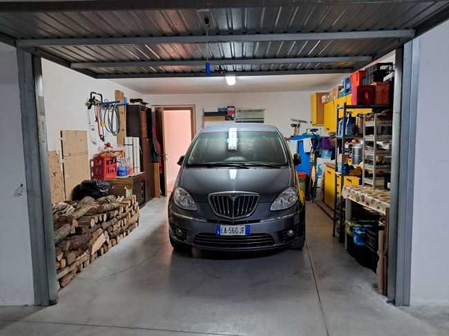 piano sottostrada rustico con camino, accesso sul giardino, un bagno con doccia ed un grande e spazioso garage con autoclave all’interno.