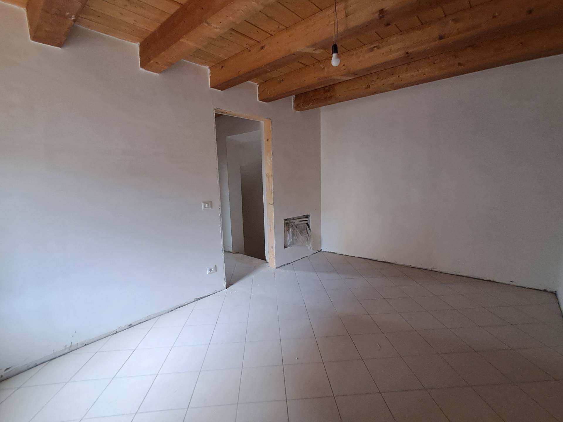 L'abitazione si apre su un comodo disimpegno e un ripostiglio, il primo piano ospita un soggiorno e cucina, al secondo piano camera matrimoniale, bagno con doccia e camera/studio.